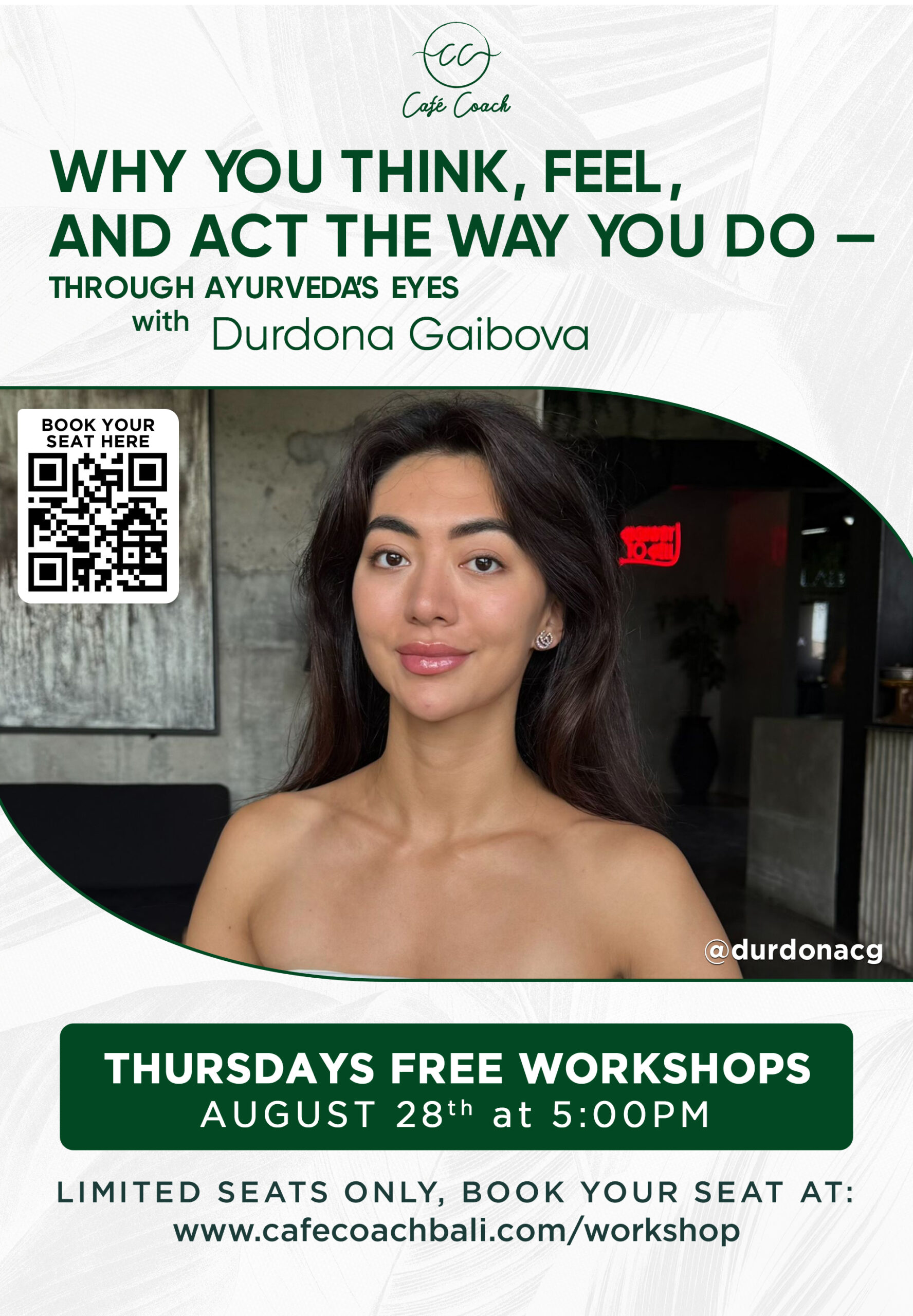 Join me for a 1.5-hour interactive workshop where we’ll explore the fascinating world of Ayurveda psychology — the ancient Indian science of mind-body balance — and how it can transform the way you live, think, and feel. Drawing from my own life experience, yoga teacher training, and studies in Ayurveda, I’ll guide you through: • […]